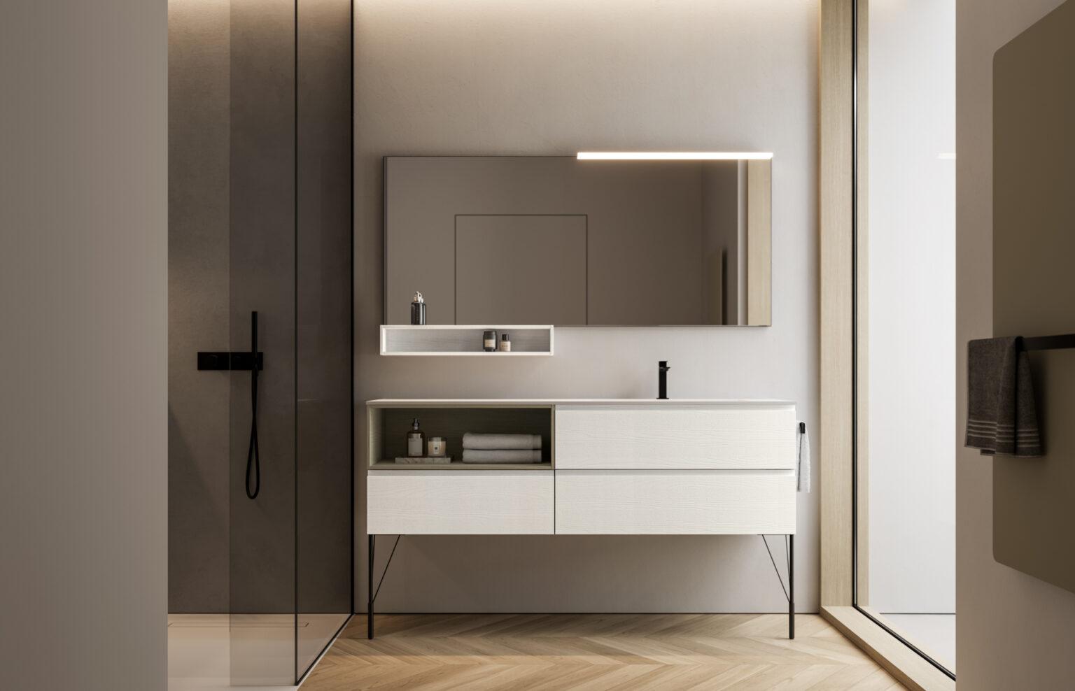 Finitions: Laqué mat Laqué brillant Laqué mat Metal Color Finition bois Frassino Frassino, dans la finition laquée à pore ouvert