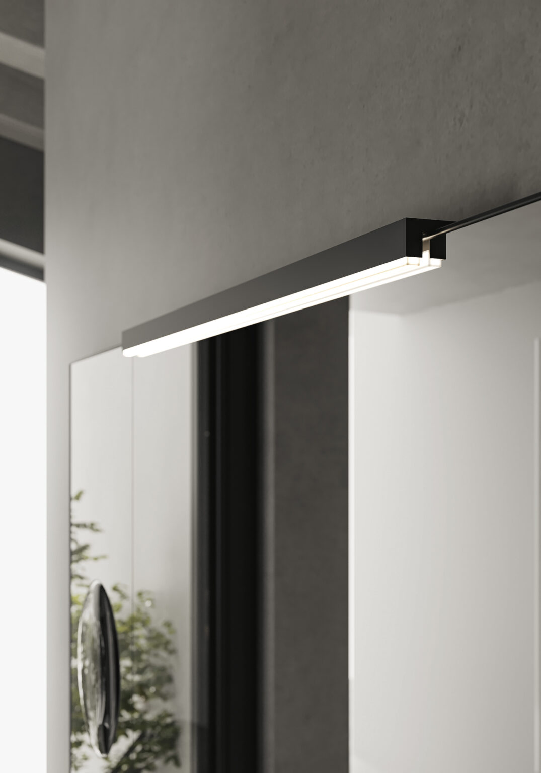 Lampe Logica installable sur les miroirs Lag/Lan et Sat/Sal. Munie d’éclairage LED. IP44 – 4000 K De 7 à 12 W – de 500 à 950 Lm