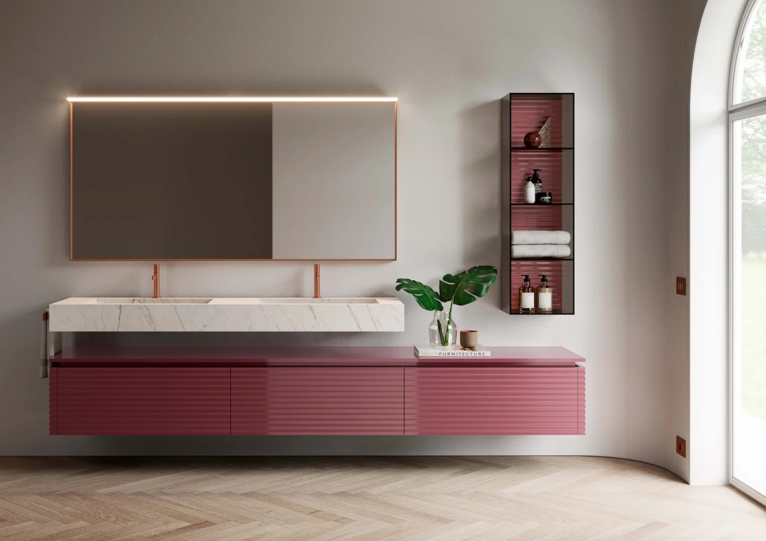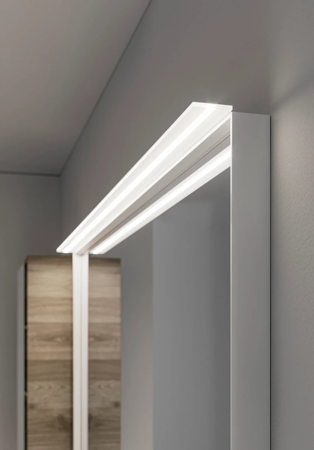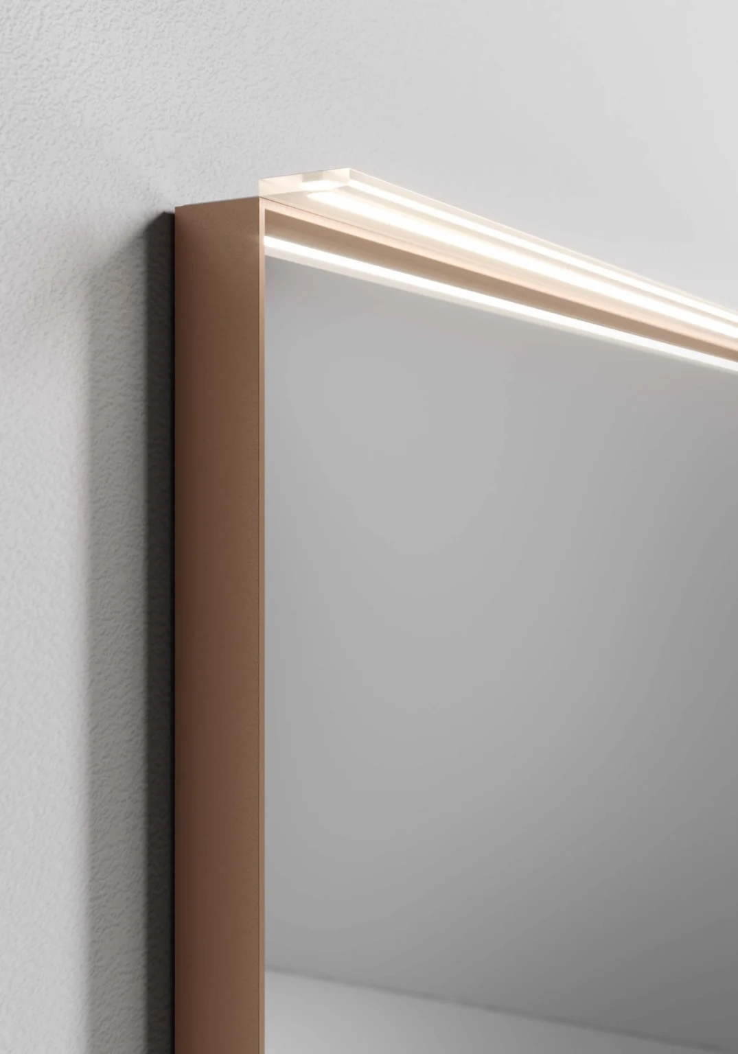 Lampe Minimal en Méthacrylate (avec support en acier), installable sur les miroirs Deka, Frame et Ottagon. Munie d’éclairage LED. IP44 – 4000 K 7 W – 560 LM