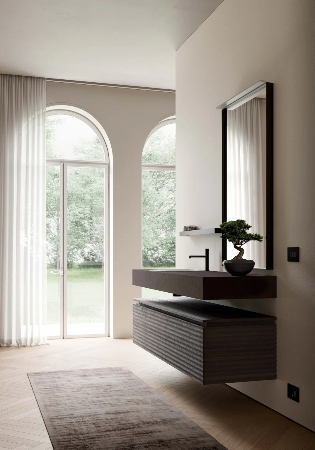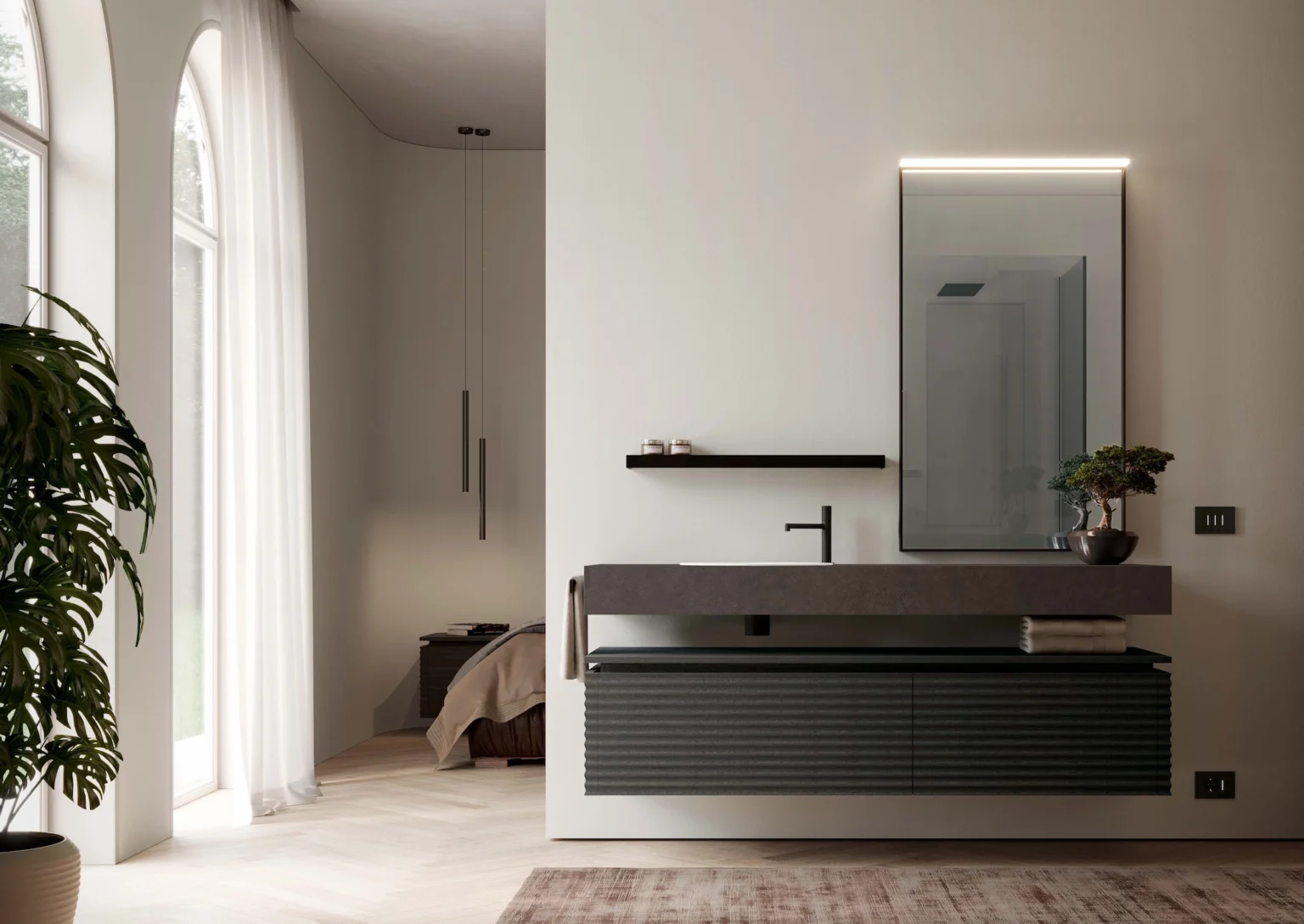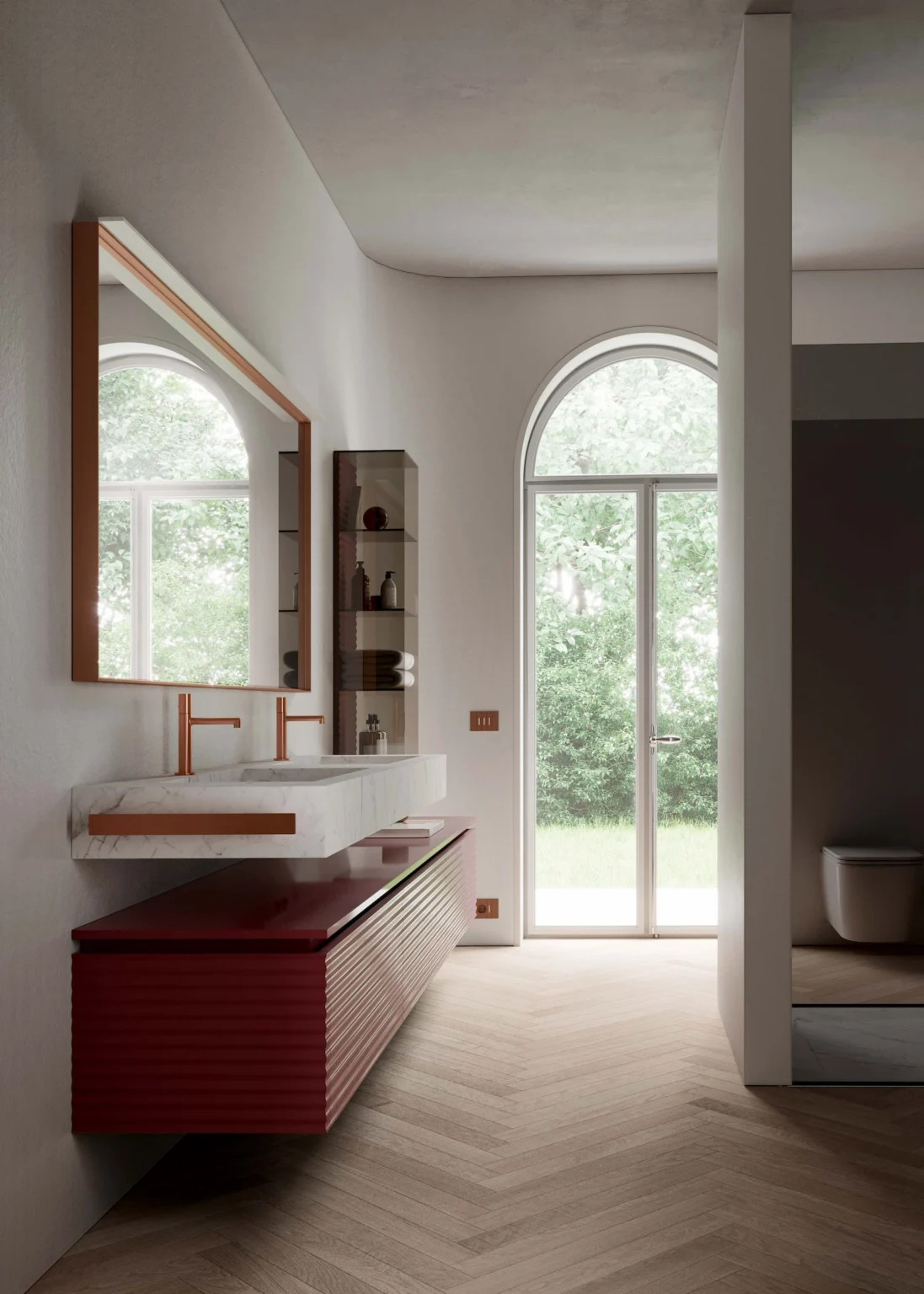 Lampe Minimal en Méthacrylate (avec support en acier), installable sur les miroirs Deka, Frame et Ottagon. Munie d’éclairage LED. IP44 – 4000 K 7 W – 560 LM