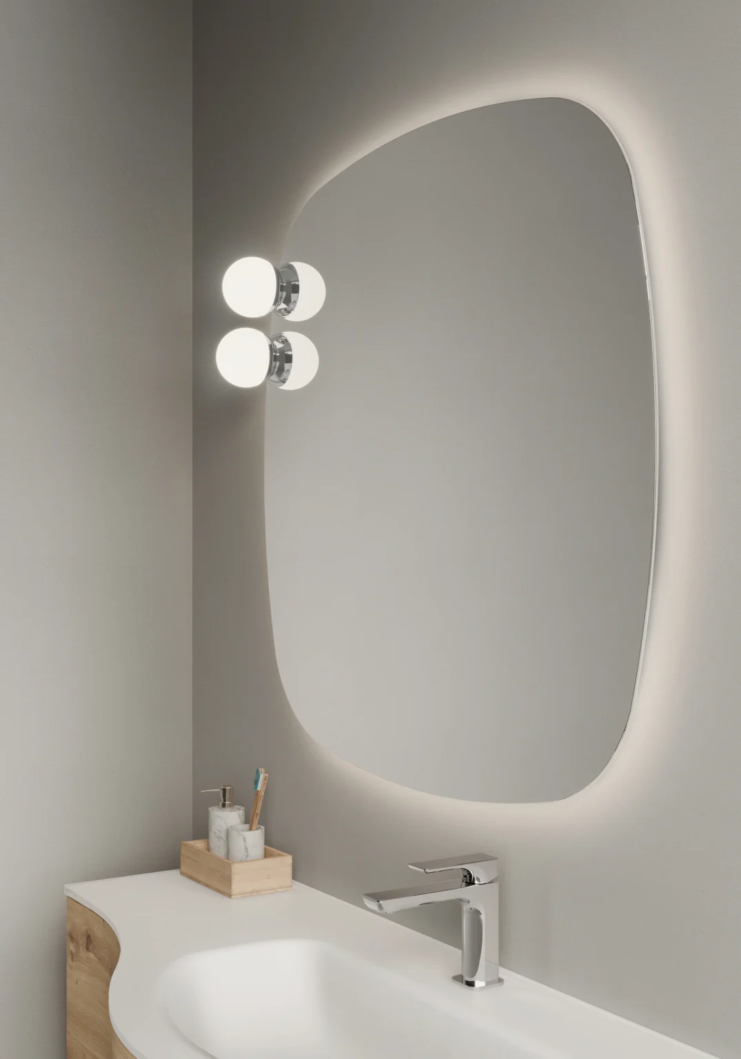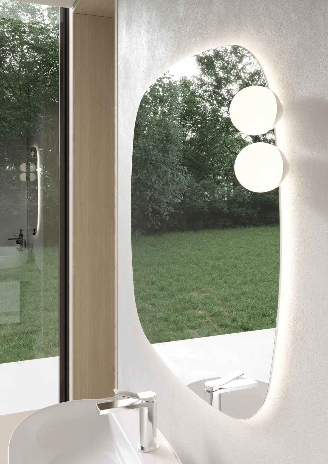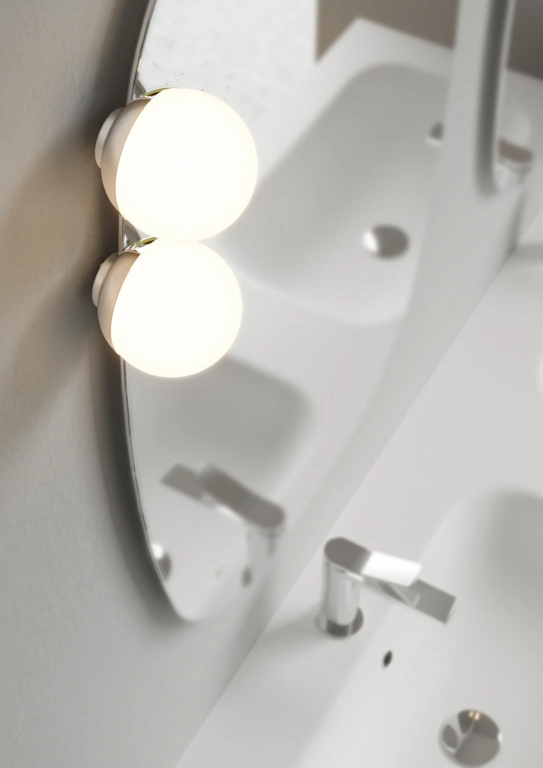Lampe Scarlet installable sur les miroirs Move, Flow, Platea, Lunetta et Ninfea. Munie d’éclairage LED. IP44 – 3000 K ou 4000 K 5 W – 450 Lm