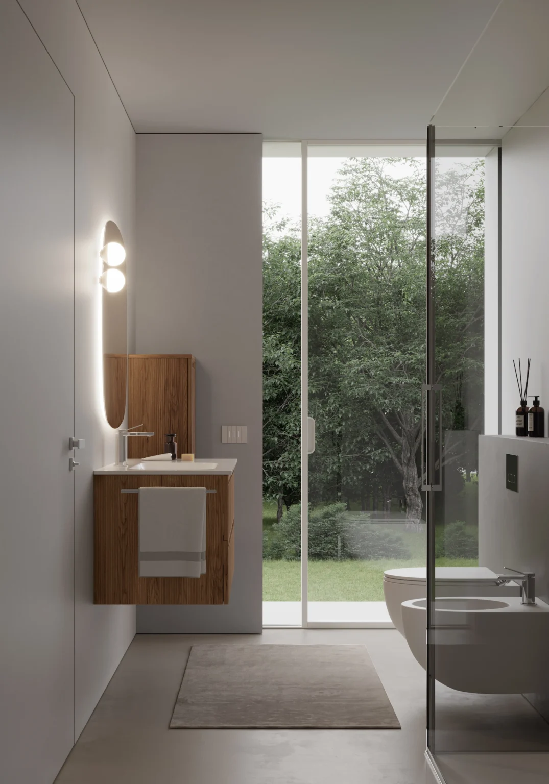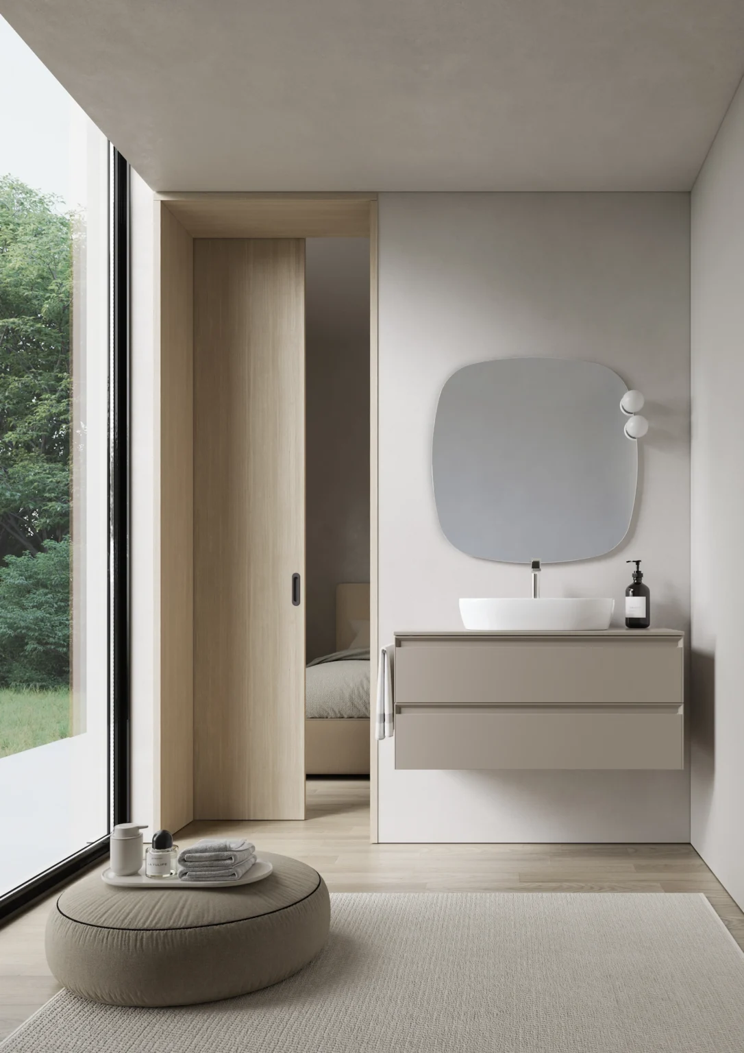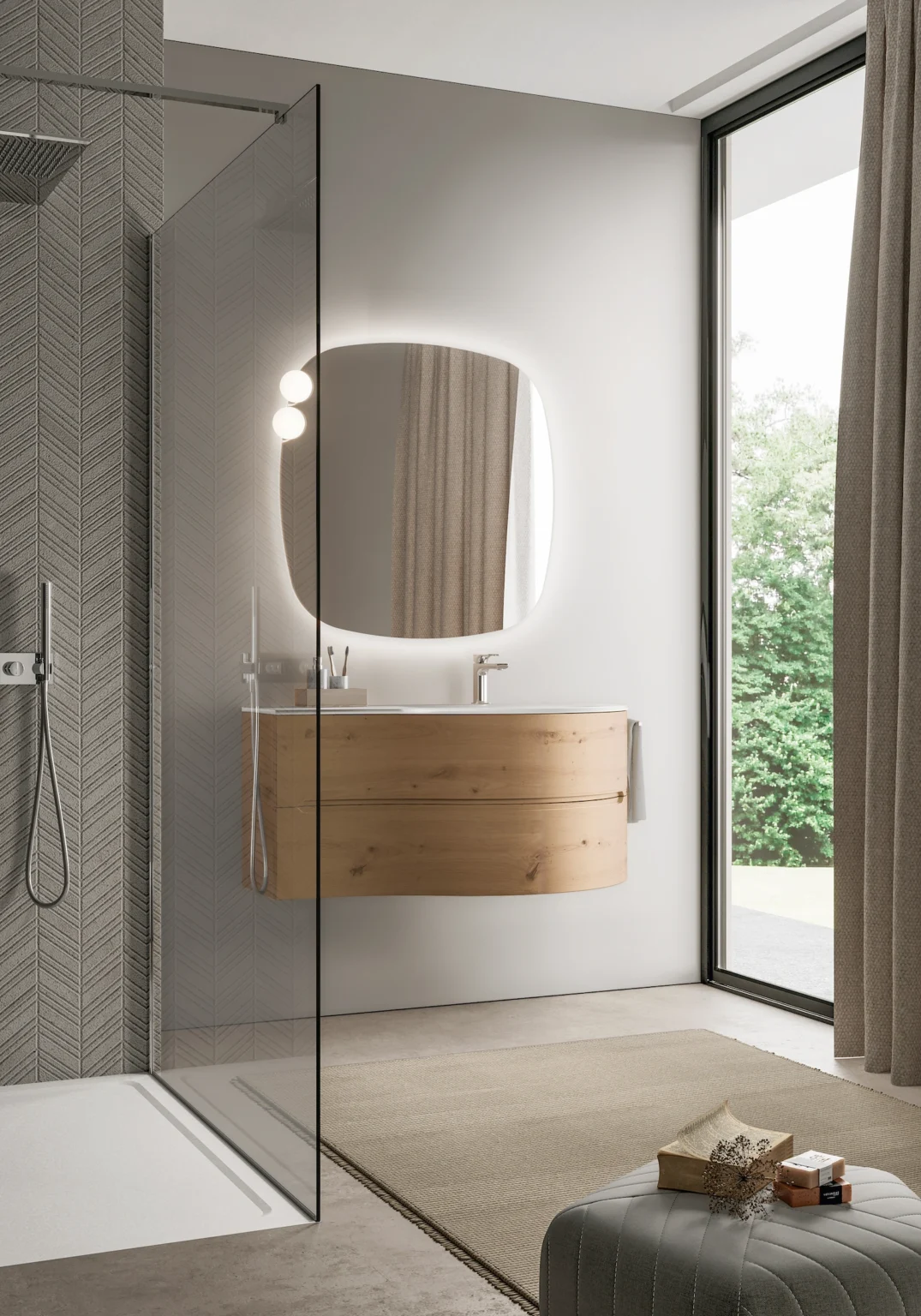 Lampe Scarlet installable sur les miroirs Move, Flow, Platea, Lunetta et Ninfea. Munie d’éclairage LED. IP44 – 3000 K ou 4000 K 5 W – 450 Lm