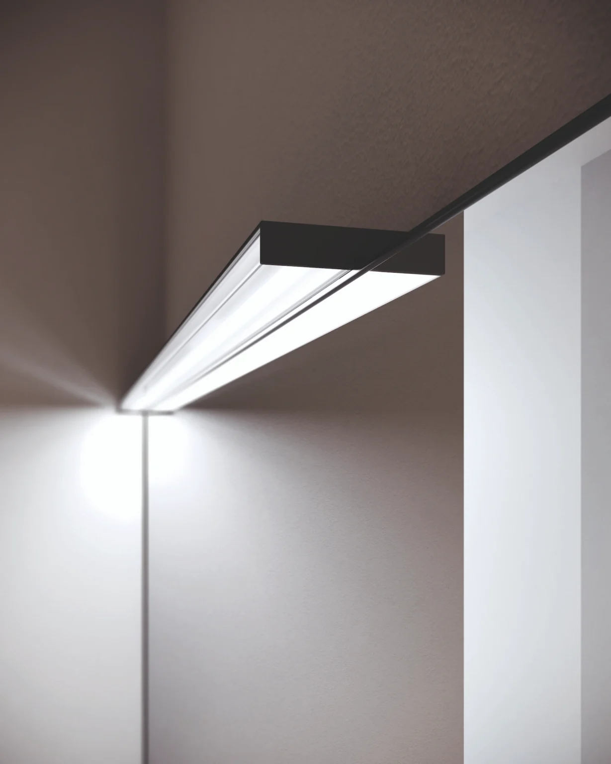 Lampe Symply installable sur les miroirs Elma, Elmas, Lag/Lan et Sat/Sal. Munie d’éclairage LED. IP44 – 4000 K De 10 à 20 W – de 930 à 1475 Lm