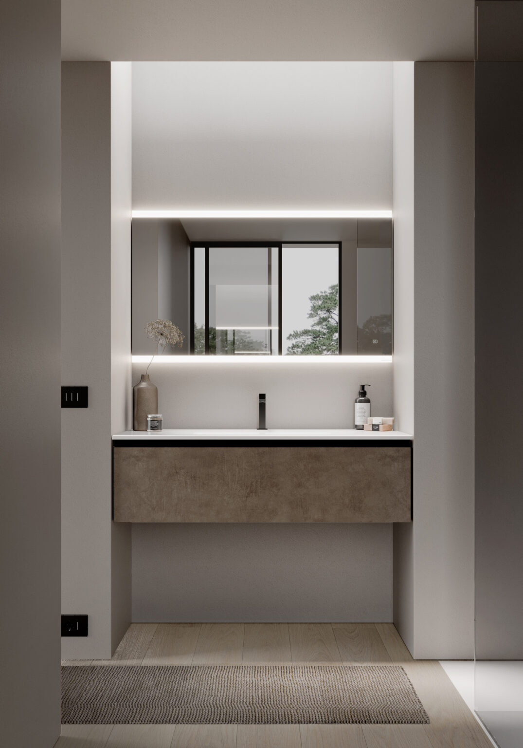 Miroir Dual Touch avec éclairage LED intégré dans la partie supérieure et inférieure, muni d’un interrupteur tactile ON/OFF. Température de couleur réglable de 2700 K à 6000 K. Prise rasoir et interrupteur non disponibles. IP44 – 4000 K. De 13 à 35 W – de 830 à 2160 Lm