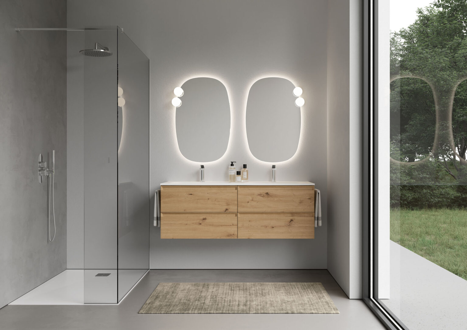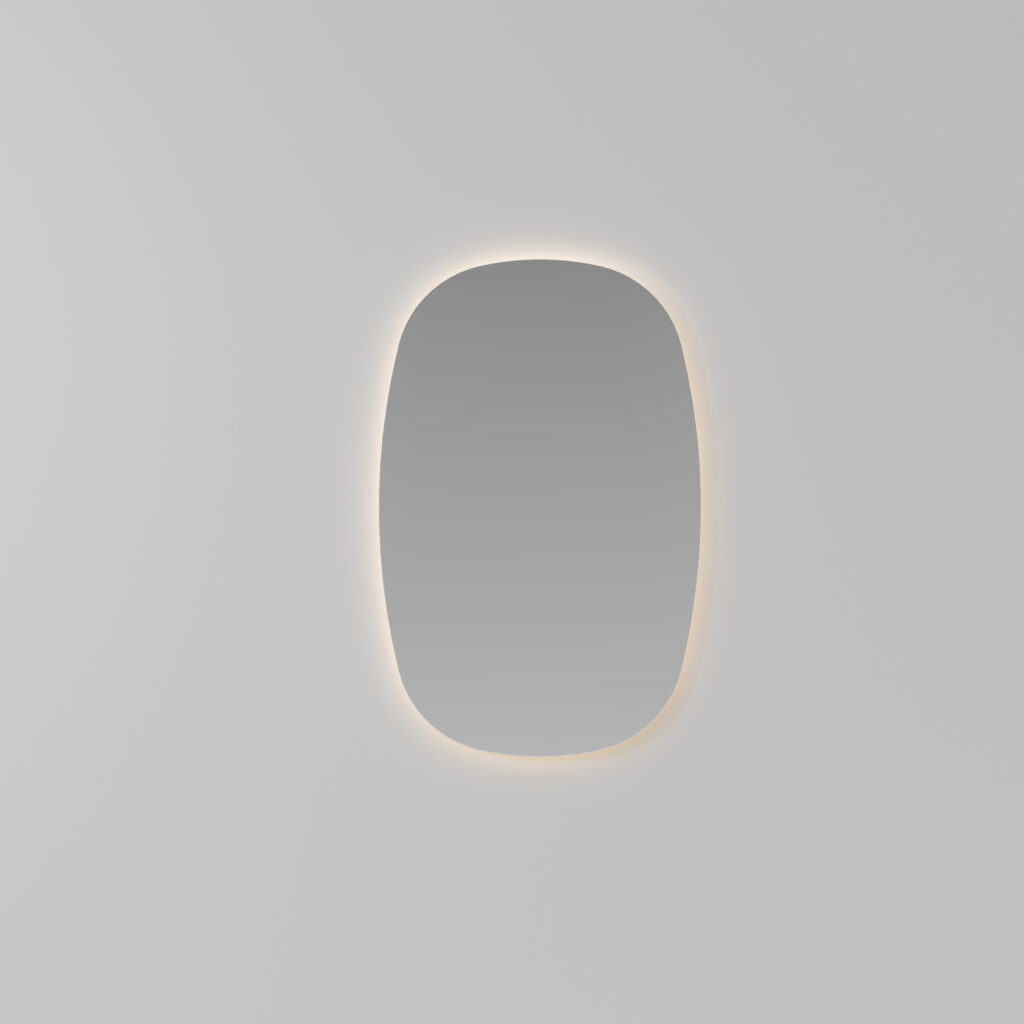 Le miroir Flow rétroéclairé par LED a une forme élégante et des bords arrondis polis. Il est disponible en une seule taille et peut être complété par une lampe sphérique Scarlet (qui se fixe au miroir par un mécanisme d’encliquetage sécurisé), proposée en une seule taille, avec éclairage LED, dans la finition chromée ou noire. IP44 – 3000 K ou 4000 K 19,6 W – 2215 Lm En option : commande tactile ON/OFF et température de couleur réglable de 2700 K à 6000 K.