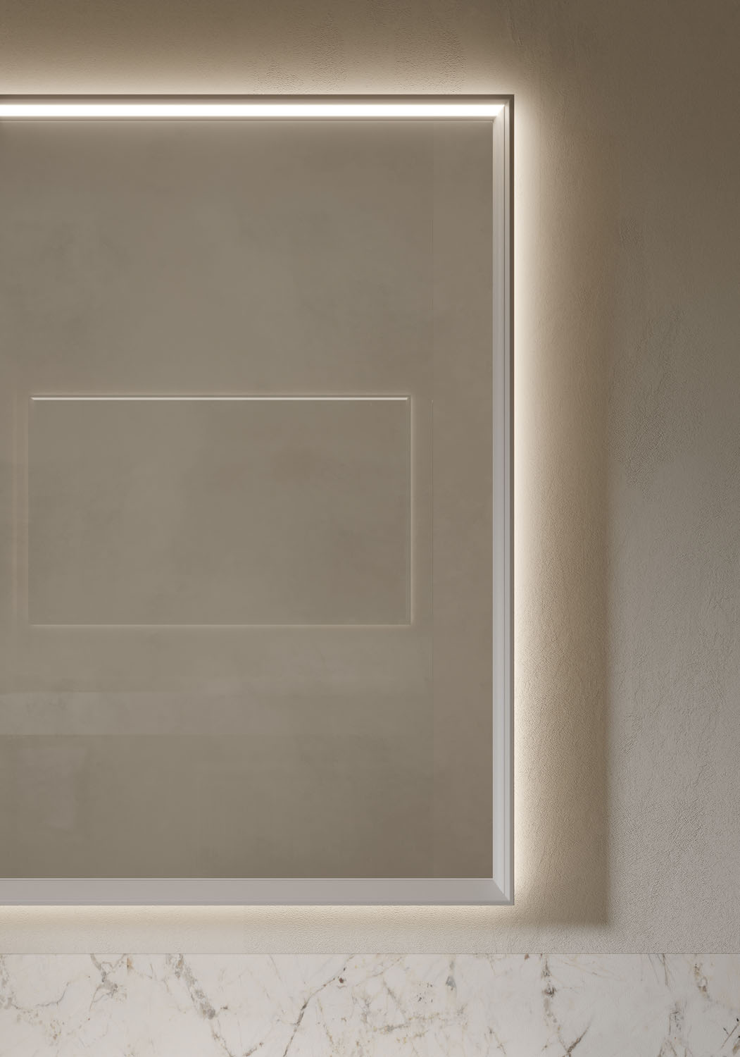 Miroir Tecnica-Up rétroéclairé avec structure en aluminium, avec éclairage supérieur intégré LED. Prise rasoir non disponible. Il n’est pas possible d’installer des lampes. IP44 – 3000 K ou 4000 K De 35 à 71 W – de 2320 à 4730 Lm En option : Éclairage LED latéral intégré. Double commande tactile ON/OFF et température de couleur réglable de 2700 K à 6000 K. Système anti-buée avec commande tactile indépendante. Un système anti-buée pour les miroirs jusqu’à 135 cm de largeur. Double système anti-buée pour les miroirs de plus de 135 cm de largeur.