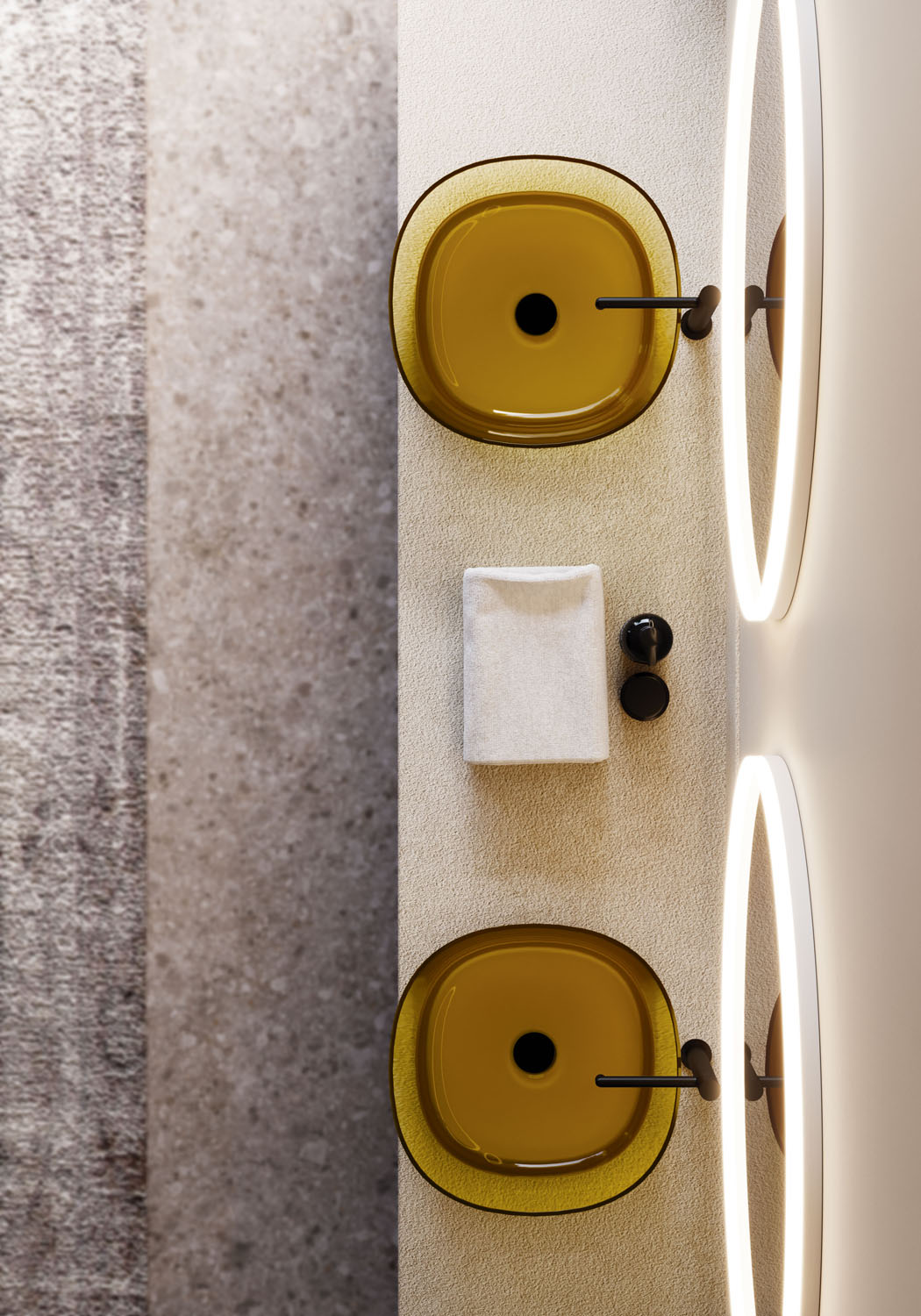 Khromalite est une résine haute technologie, transparente et colorée, d’aspect brillant et homogène, composée de résines polyester et d’un faible pourcentage de pigments. Sa surface présente une brillance semblable à celle du verre, mais avec l’avantage d’un effet doux et chaud au toucher. Les produits en Khromalite sont fabriqués avec précision grâce à la technologie du moulage sous pression.