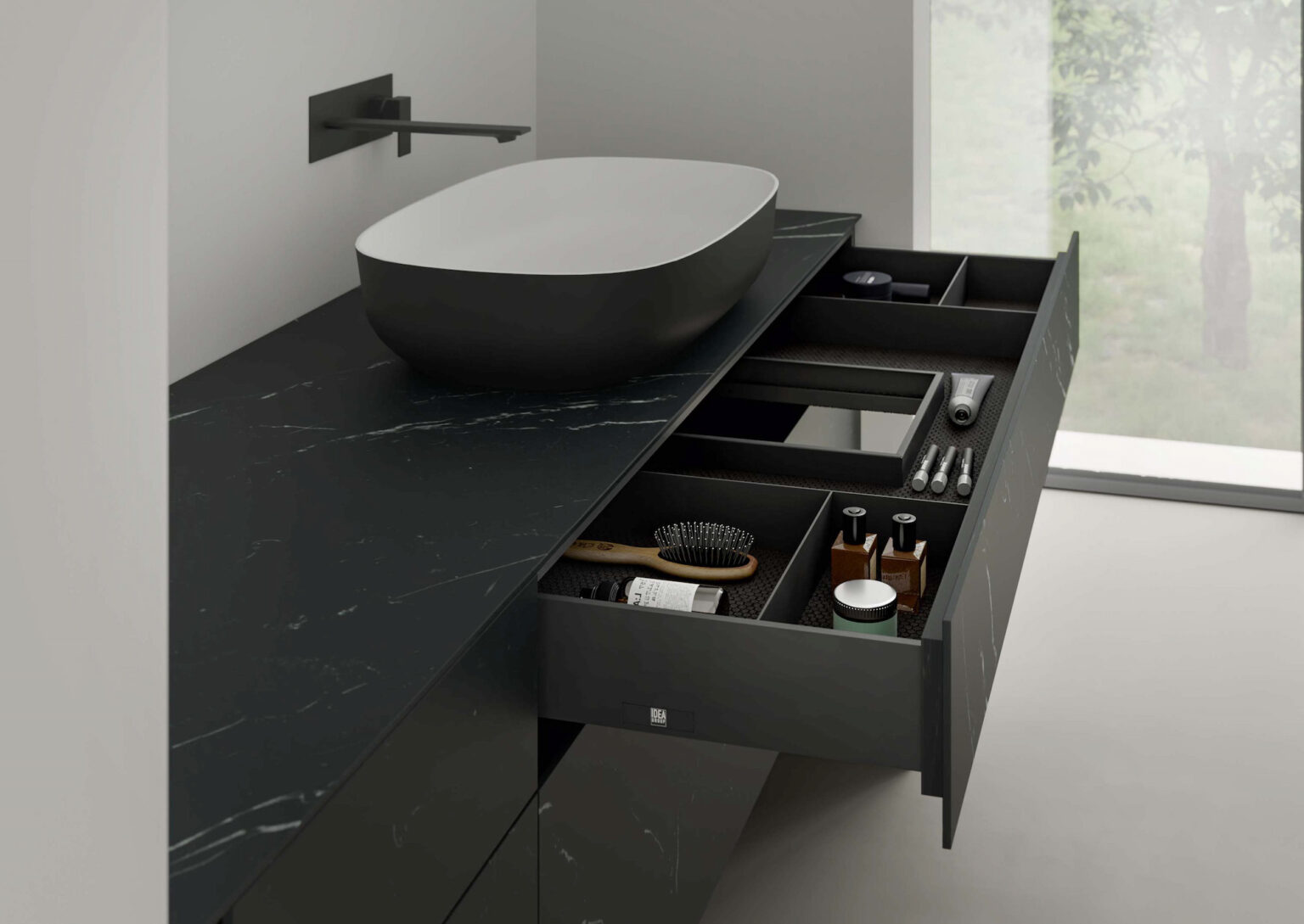 Cristalplant® est connu pour son aspect séduisant de pierre naturelle et sa finition douce au toucher. C’est un matériau composé principalement de charges minérales de trihydrates d’aluminium de haute pureté, liées par des résines Biobased® d’origine végétale (dérivées du maïs). Résistant, antibactérien car photocatalytique, il résiste aux rayures, aux chocs et au jaunissement assurant ainsi une longue durée de vie ; de plus, il est recyclable en fin de vie.