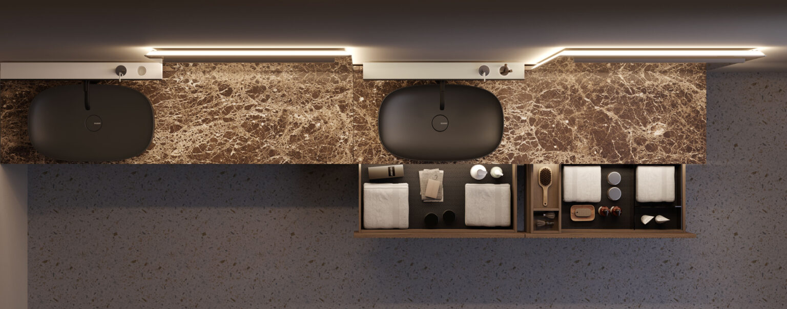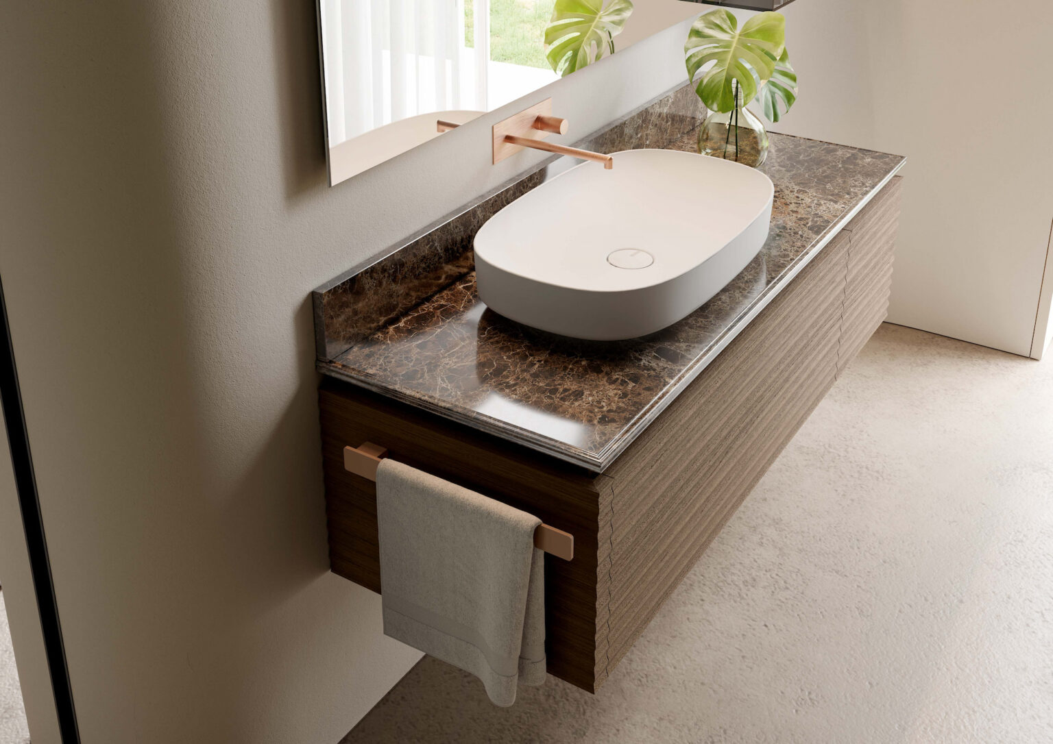 Les vasques en céramique sont réalisées avec des matières premières d’origine naturelle telles que l’argile et le kaolin auxquels sont ajoutés du quartz et du feldspath, finement broyés. Elles sont extrêmement durables et résistantes, et leur couleur reste inaltérable dans le temps même dans des conditions de forte exposition à la lumière.