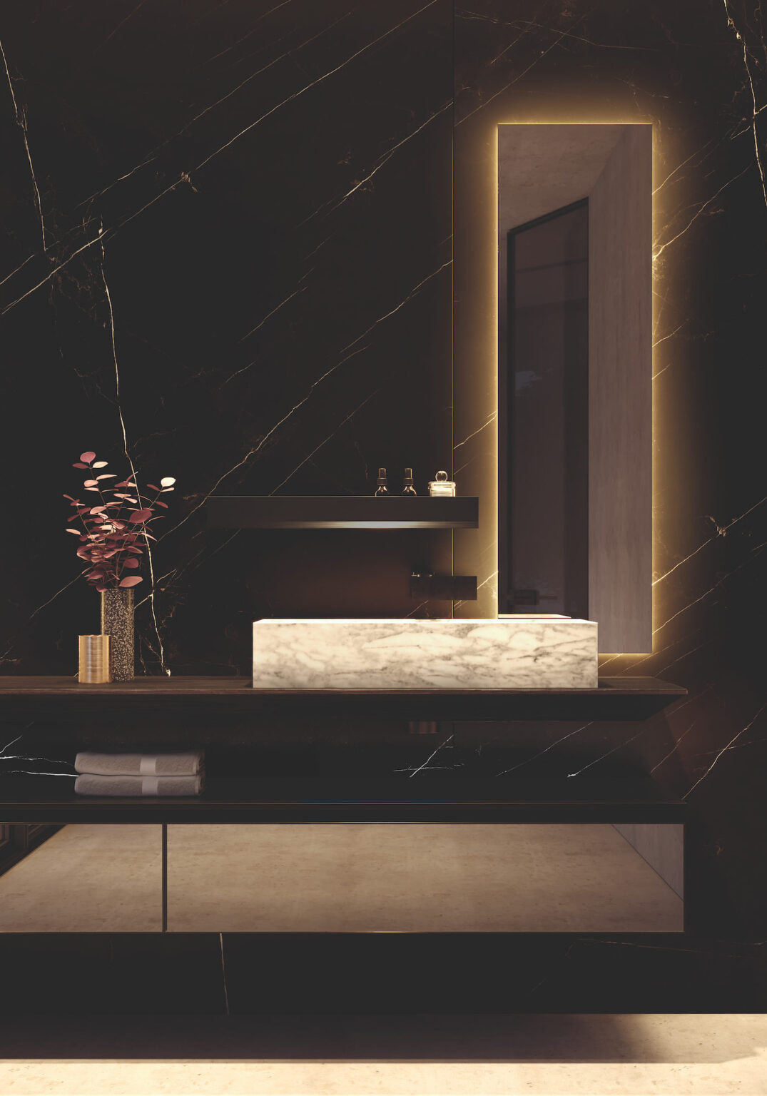 Les marbres naturels sont des roches calcaires naturelles, constituées de carbonates de calcium, de silicium, de fer et d’autres minéraux : leur combinaison variable détermine des variétés chromatiques et structurales différentes. De petites imperfections, différences de nuance ou de compacité de la surface ne doivent pas être considérées comme des défauts de qualité, mais comme des caractéristiques de la matière première.