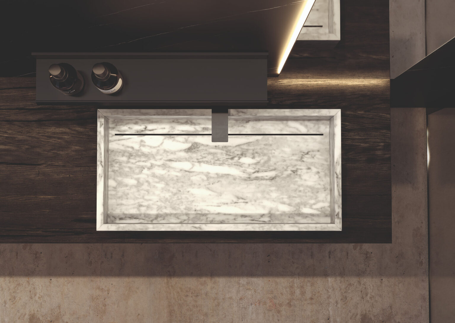 Vasque Slide à poser, en marbre naturel brillant et mat, sans trop-plein.