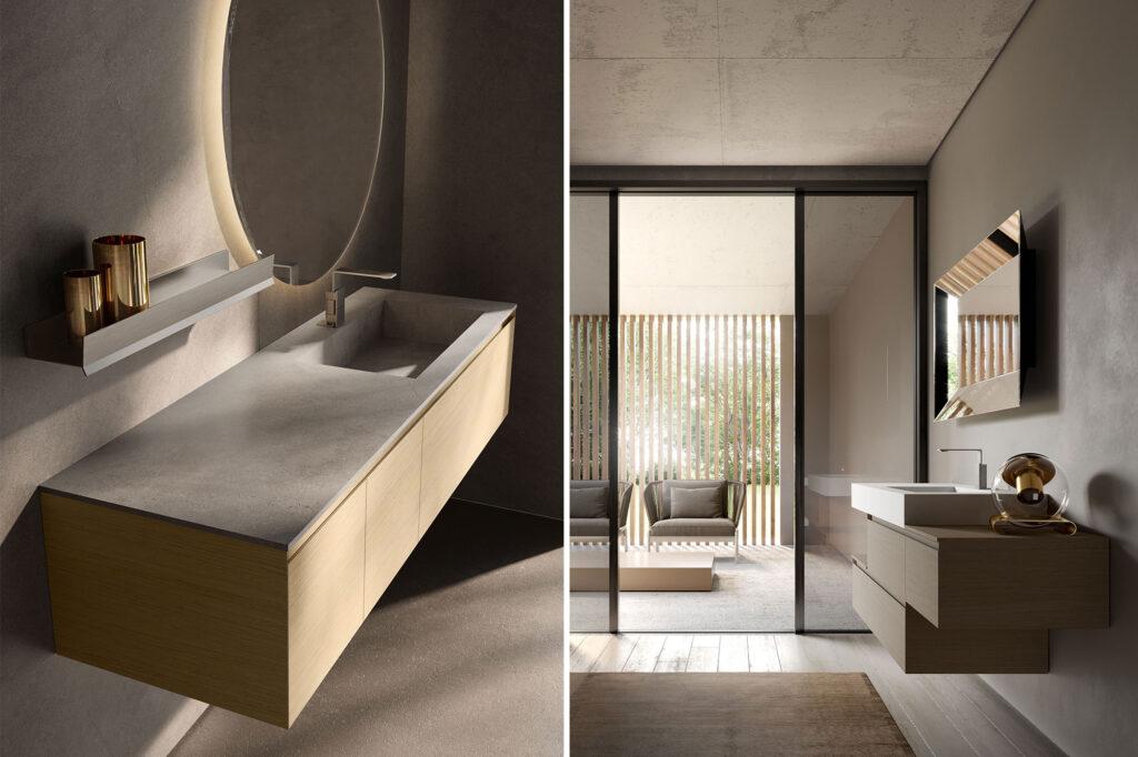 Une palette de couleurs inspirées de la nature est au centre du projet d'ameublement de la salle de bains : le blanc pur (Neve), le violet...