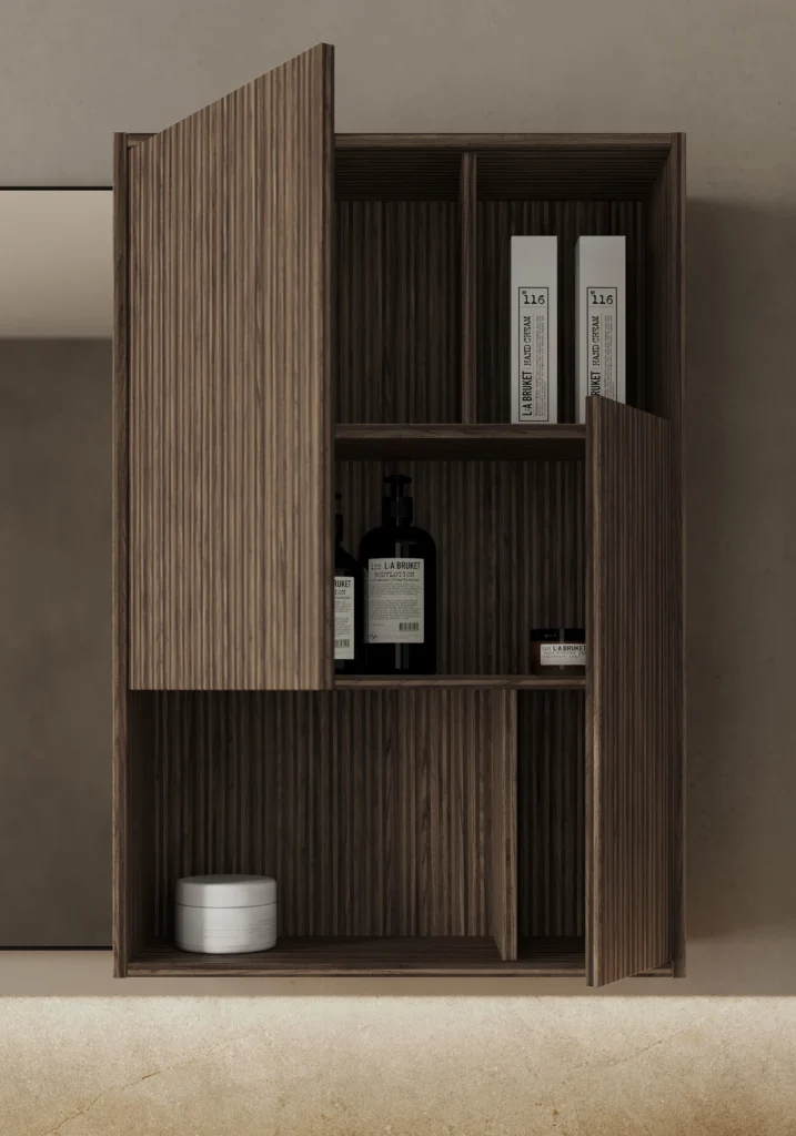 La collection Nyù est la quintessence du mobilier de salle de bains élégants et discrets, alliant des matériaux sophistiqués à des couleurs séduisantes pour une décoration de salle de bains raffinée et de classe.