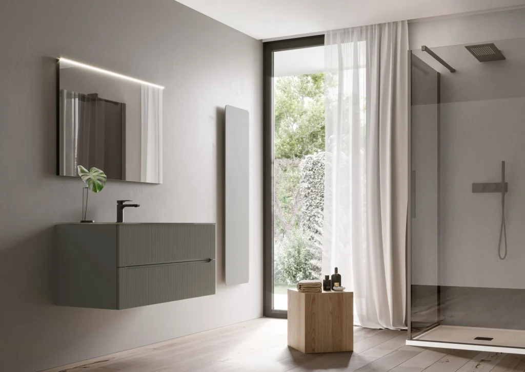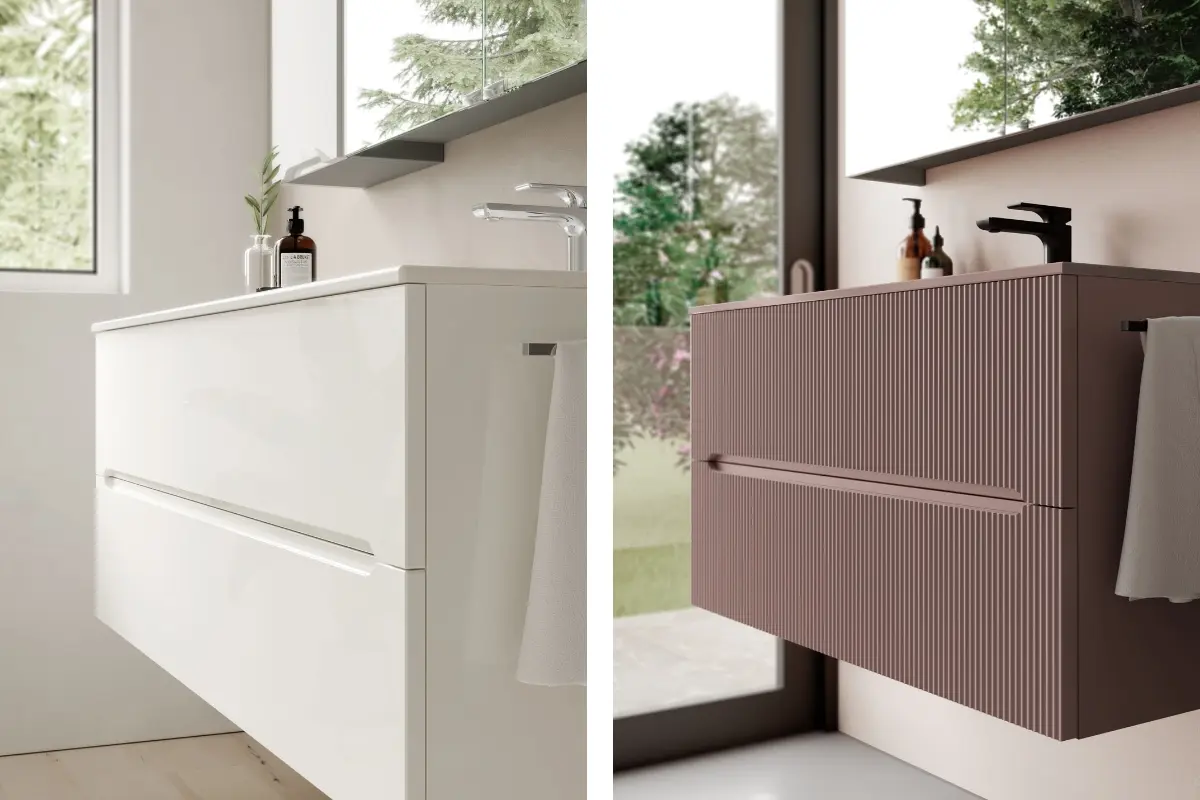 Trois options de façade au choix : lisse (Smyle Plan), cannelée (Smyle Onda) ou courbe. Smyle est une collection de meubles de salle de bains alliant esthétique et fonctionnalité, qui répond aux diverses exigences en matière de design contemporain. Elle s’adapte à tout type d’agencements grâce à la polyvalence des combinaisons possibles et aux lignes épurées.
