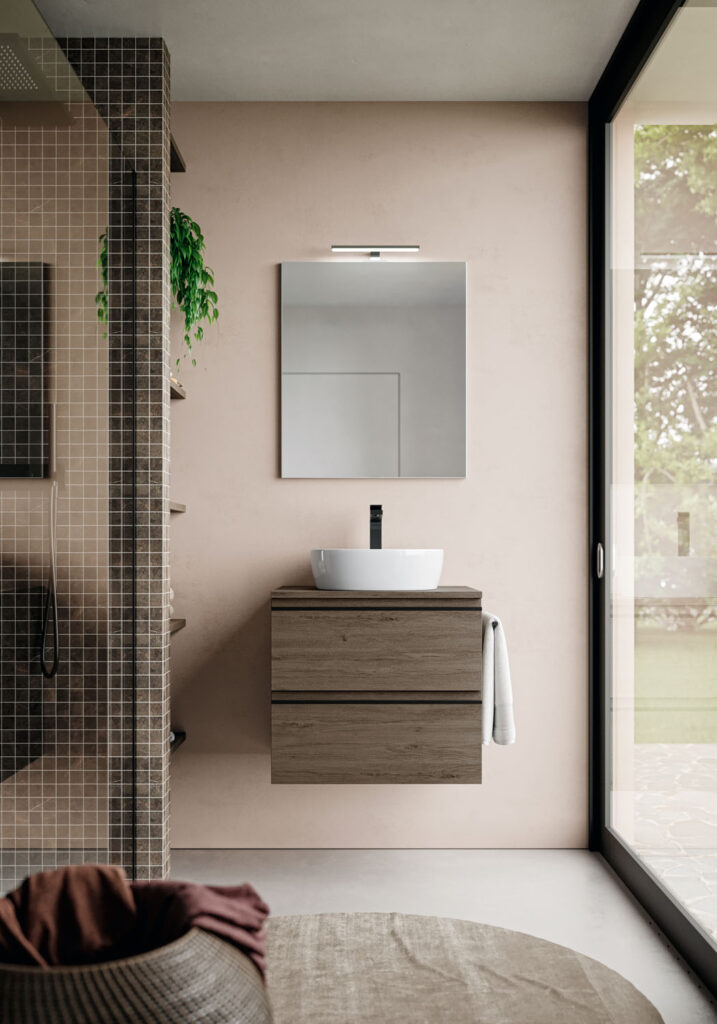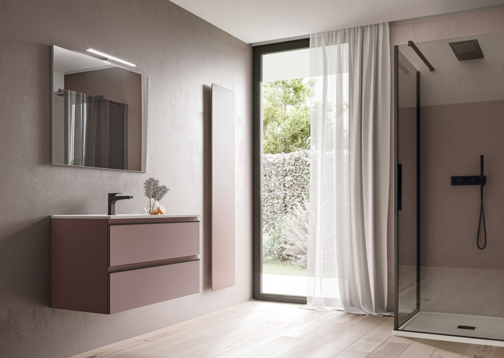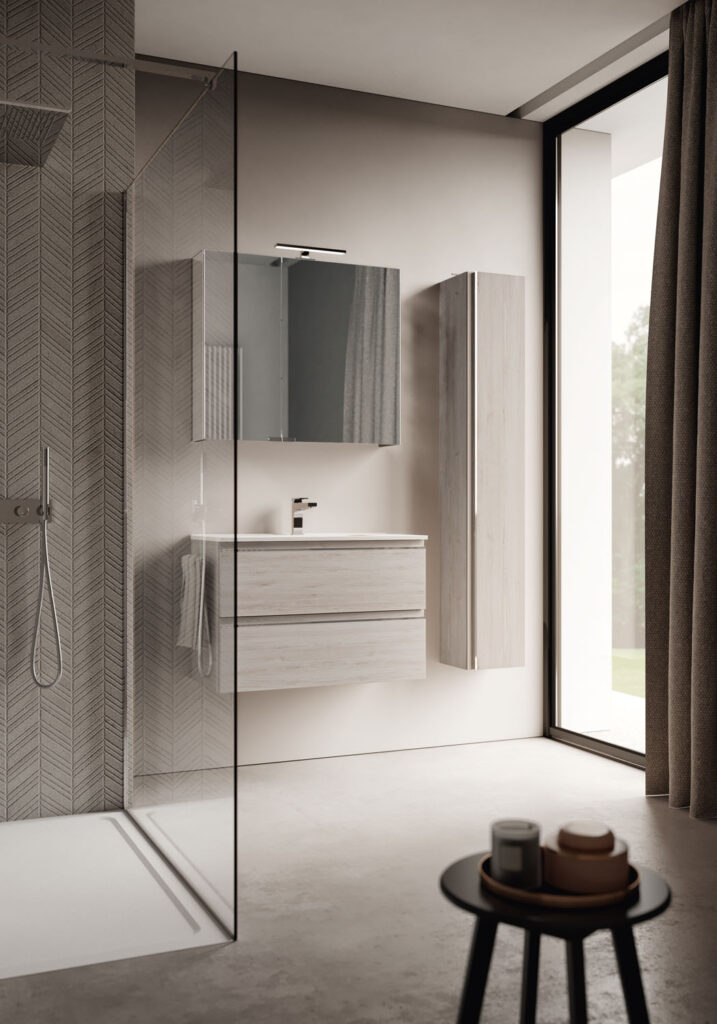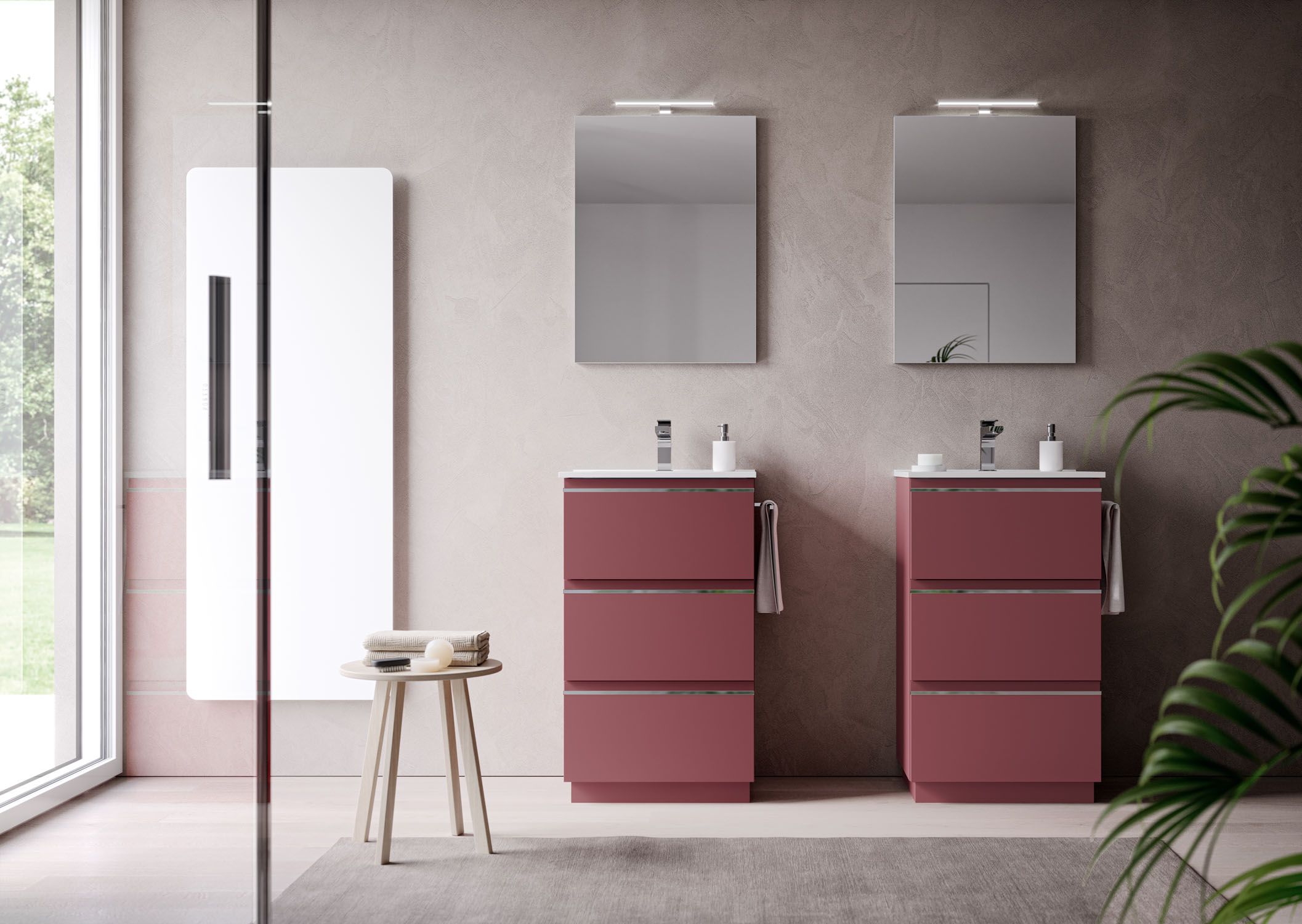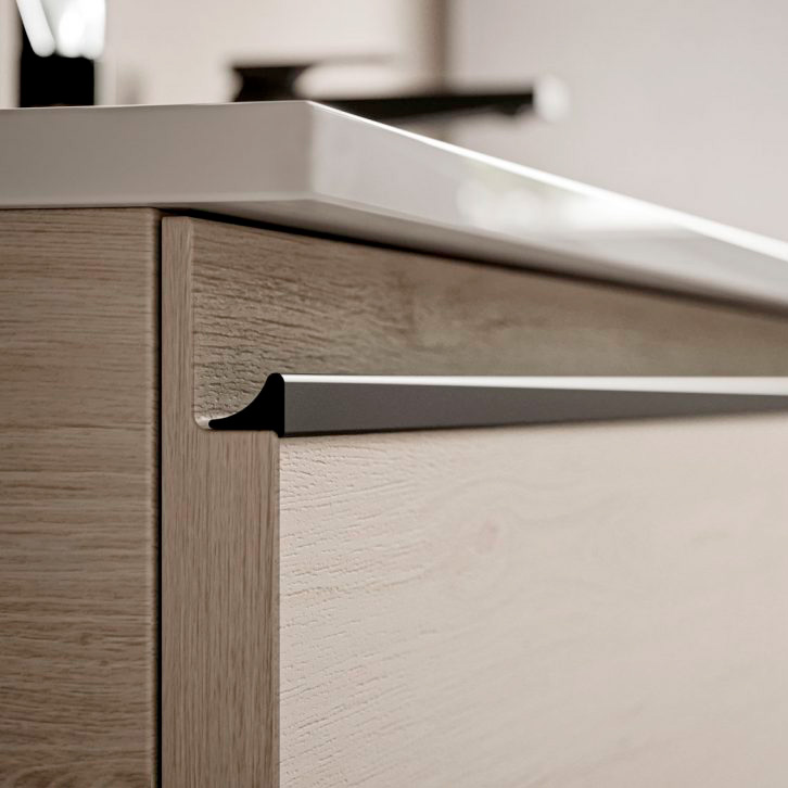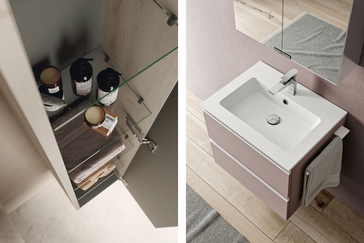 System est une collection de meubles de salle de bains à poser au sol ou muraux, disponibles dans une vaste gamme de finitions et combinables avec différentes solutions de vasque (à poser ou intégrée), avec une profondeur réduite (jusqu’à 38,5 cm) pour répondre à des exigences spécifiques de gestion de l’espace. La prise de main est disponible en trois finitions (blanc, noir mat ou chromée) pour créer un ensemble coordonné.
