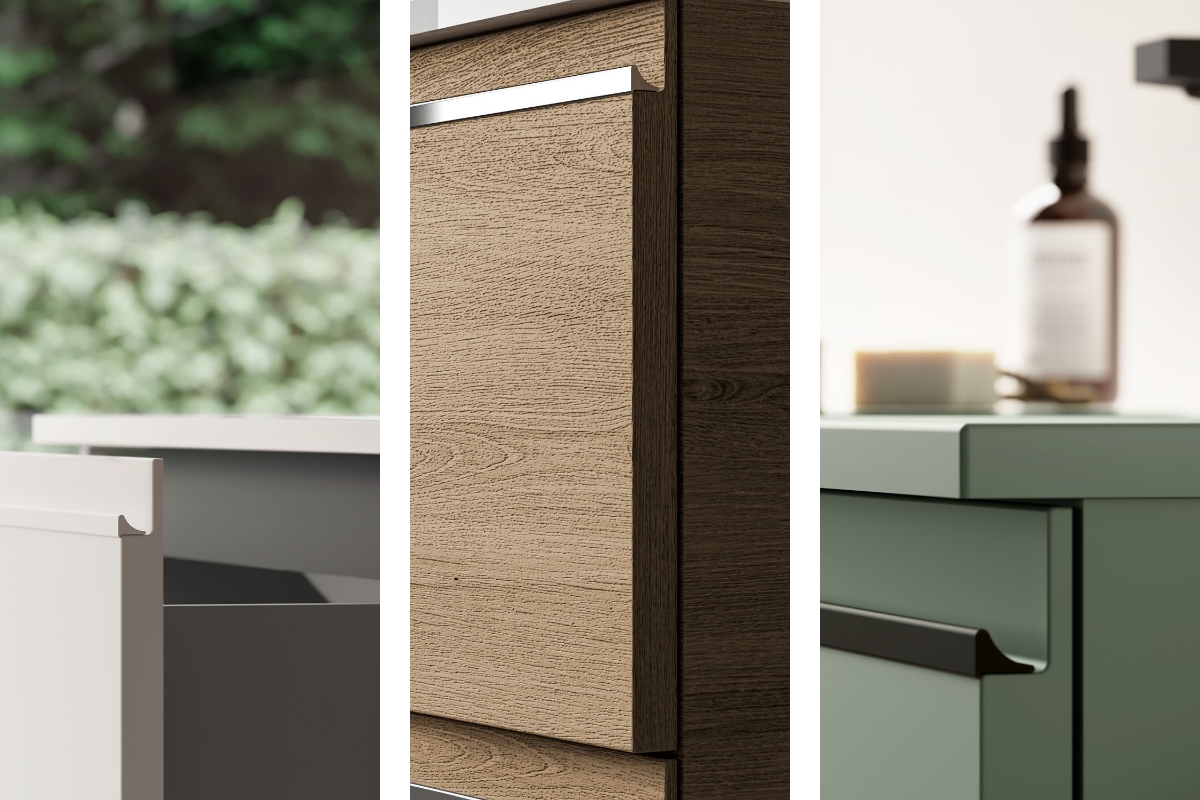 Prise de main avec profilé blanc, chromé ou noir assurant une ouverture fonctionnelle.