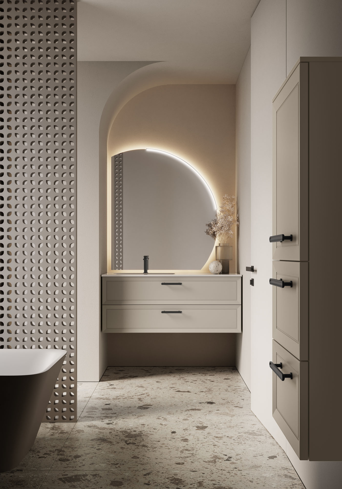 Géométriques, polyvalents et éclectiques, les nouveaux miroirs Bijou, Ninfea, Platea et Lunetta, avec leur forme douce ou asymétrique, deviennent le centre d’attention de l’ameublement de la salle de bains. Associés à la lampe Arko ou Piuma, ils diffusent une lumière délicate qui enveloppe la pièce et met en valeur ses matériaux et ses proportions.