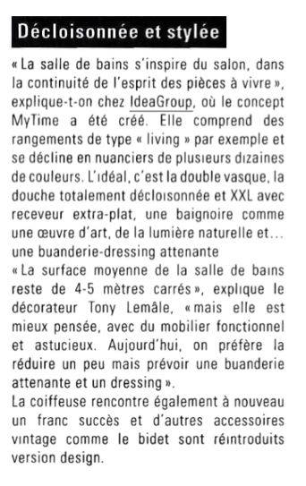 Le magazine trimestriel français Offre Déco a sélectionné la baignoire Round by Disenia comme produit must des salles de bains et la collection My Time comme solution d’ameublement en ligne avec les tendances de 2015.